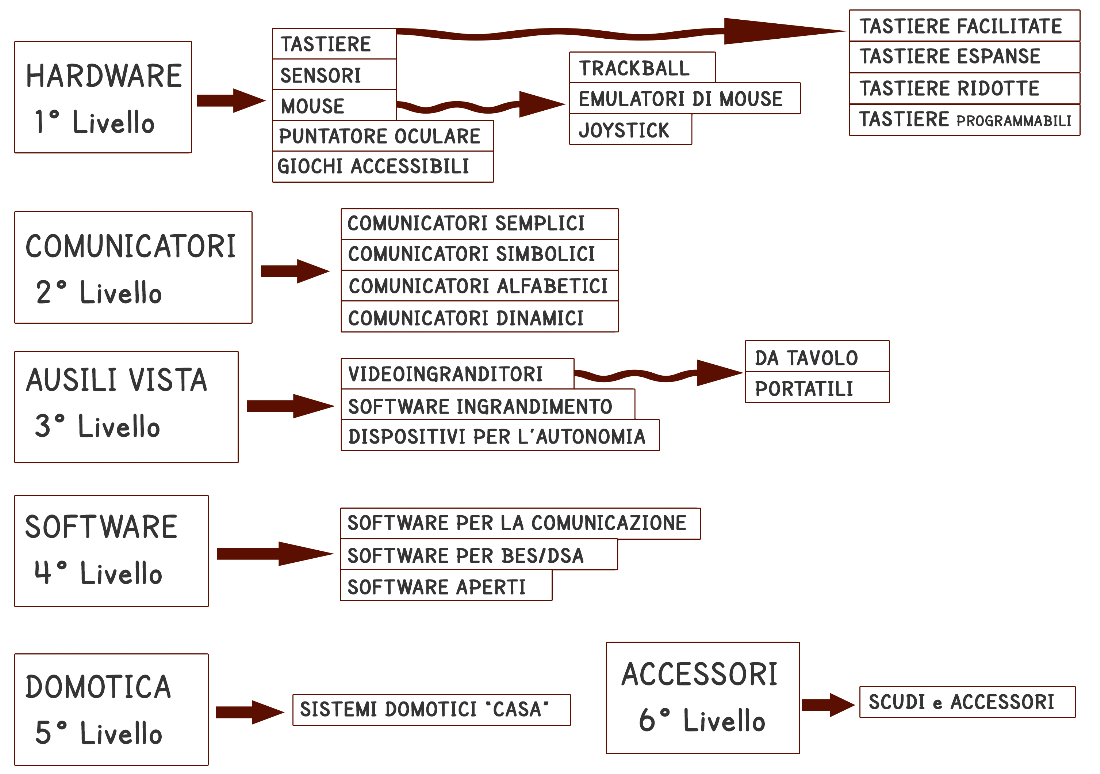 Questo schema rappresenta come sono suddivise le tecnologie assistive